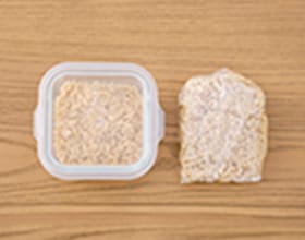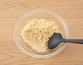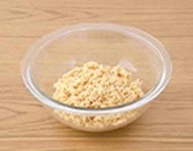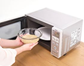 ダイズライス100gを計量し、耐熱容器に入れる。